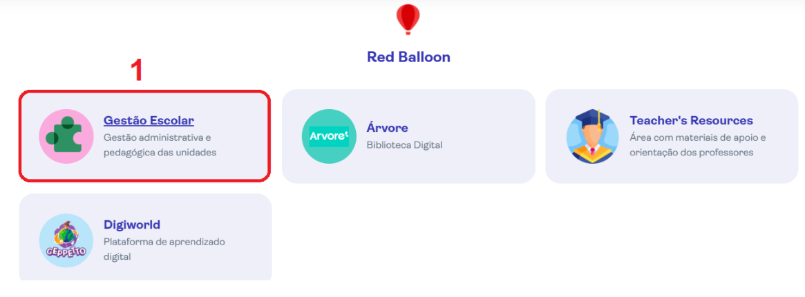 1. Fazer login na plataforma e clicar na opção “Gestão Escolar”.