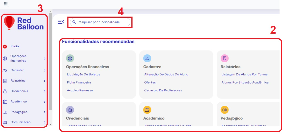 4. Existe a possibilidade de pesquisar uma funcionalidade na barra de pesquisa, apenas digitando o nome que procura.